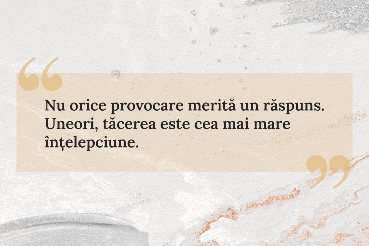 "Nu orice provocare merită un răspuns. Uneori, tăcerea este cea mai mare înțelepciune."