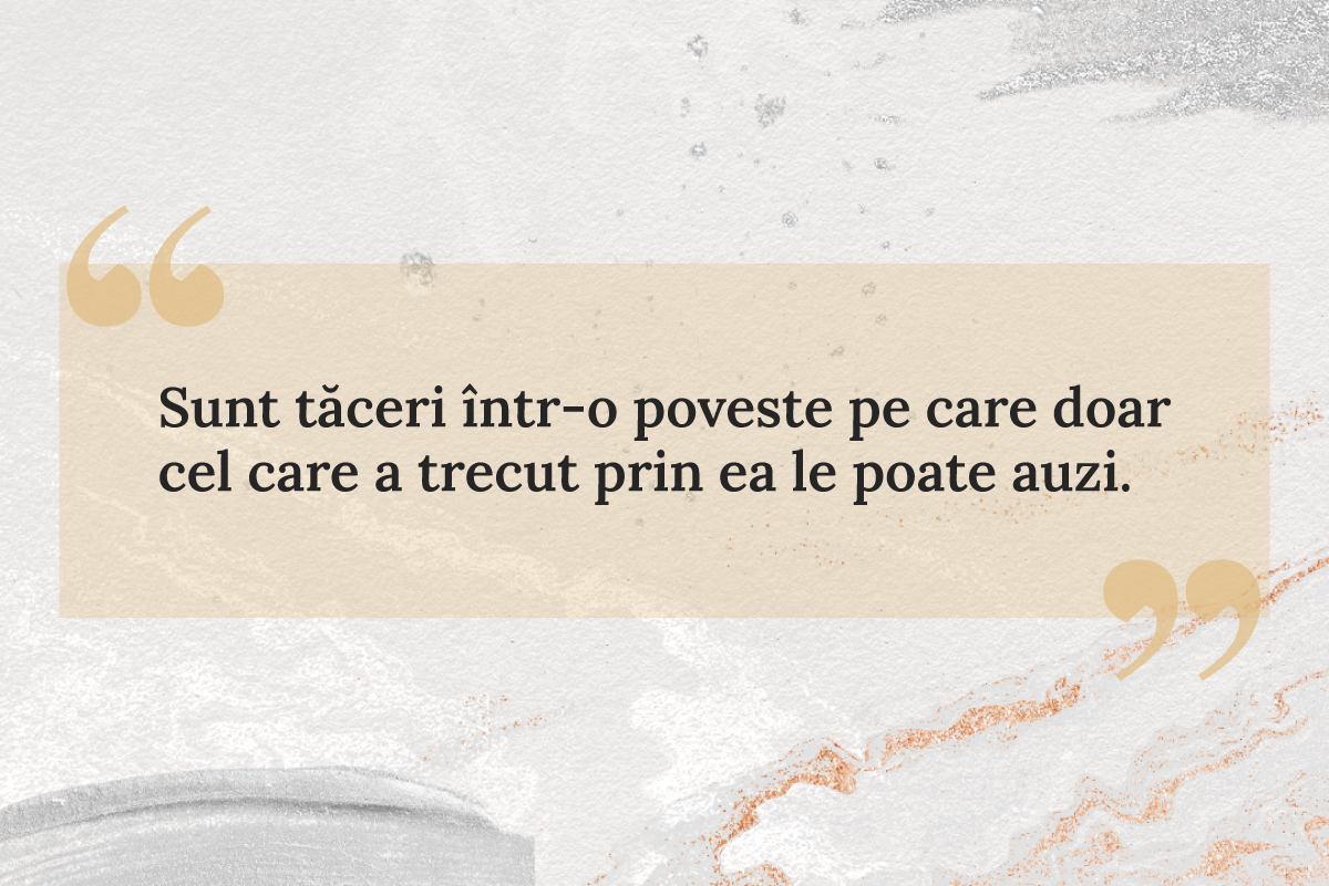 „Sunt tăceri într-o poveste pe care doar cel care a trecut prin ea le poate auzi."