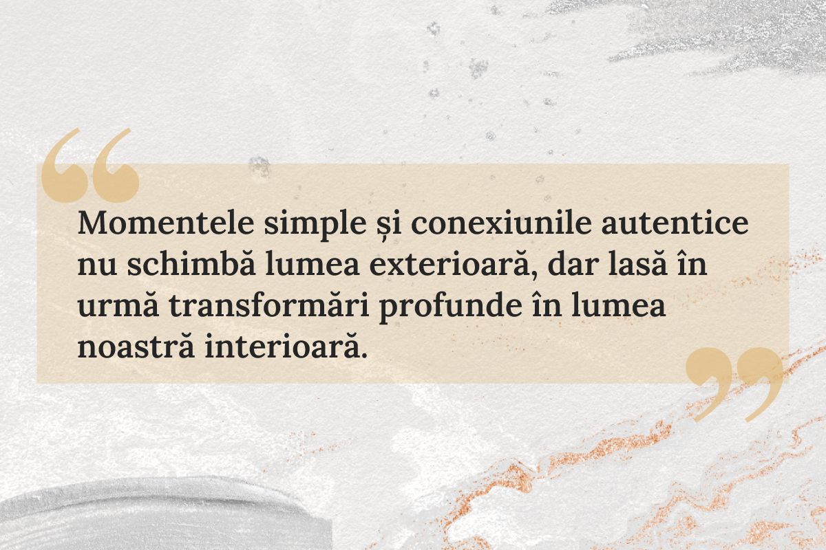 "Momentele simple și conexiunile autentice nu schimbă lumea exterioară, dar lasă în urmă transformări profunde în lumea noastră interioară."
