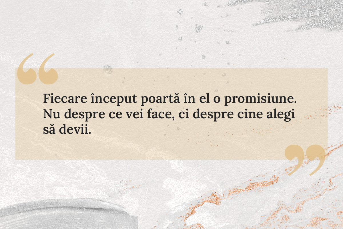 "Fiecare început poartă în el o promisiune. Nu despre ce vei face, ci despre cine alegi să devii."