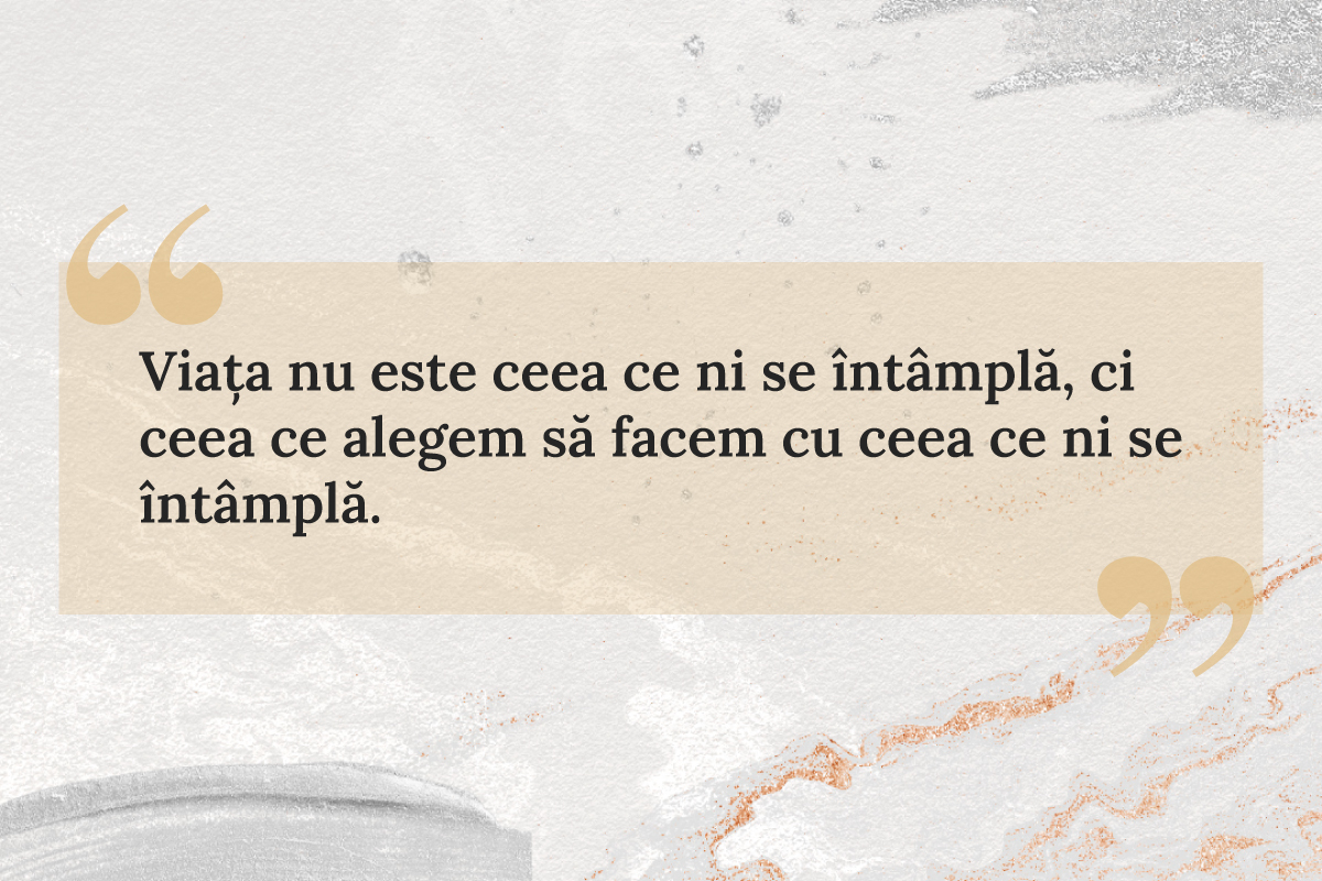 "Viața nu este ceea ce ni se întâmplă, ci ceea ce alegem să facem cu ceea ce ni se întâmplă."